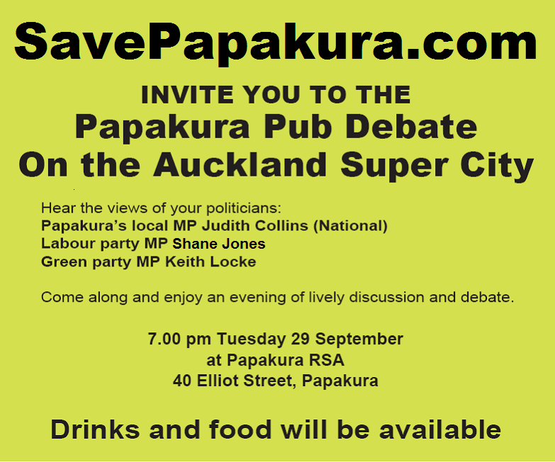Please bring your friends and family to the Papakura Pub Debate: